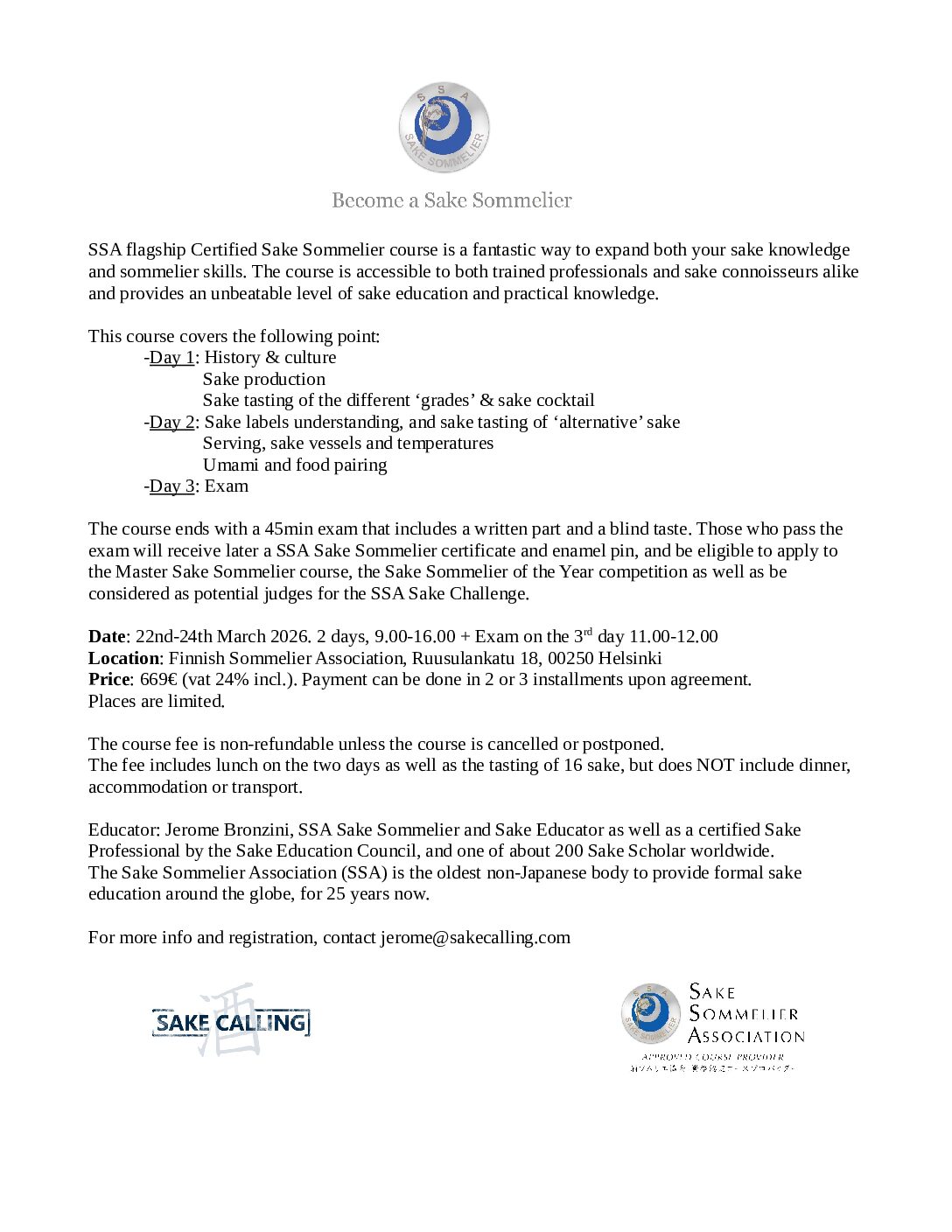 Certified Sake Sommelier course